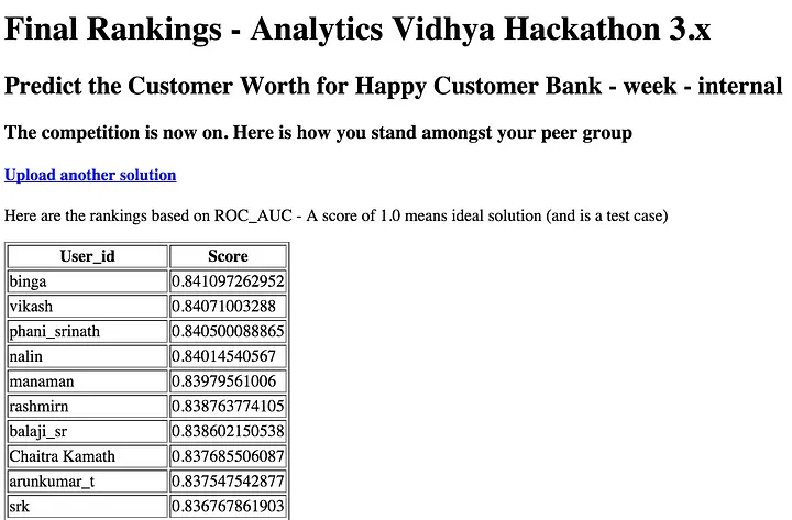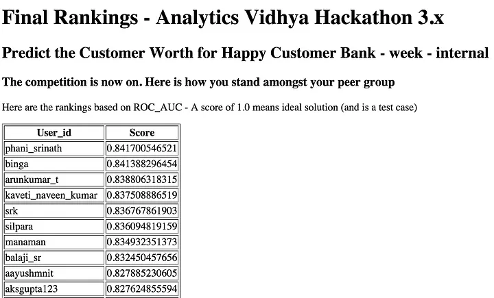 The evaluation metric of this competition was AUC score. So, I once went through the “rank averaging” section on this awesome ensembling guide. This article should be read multiple times by any data analyst participating in a data science competition. Also, check out my 5 minutes to understand AUC guide I posted on Kaggle forums.